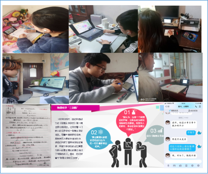 、视频、音频、在线讨论、线上答题等多种方式,积极开展教学互动,力争网络课堂务实高效;网络课堂下,学生们及时完成作业,拍照上传QQ群或微信群,任课教师点评、记录、答疑解惑,及时巩固学习成果,实现“停课不停学,离校不离师”。