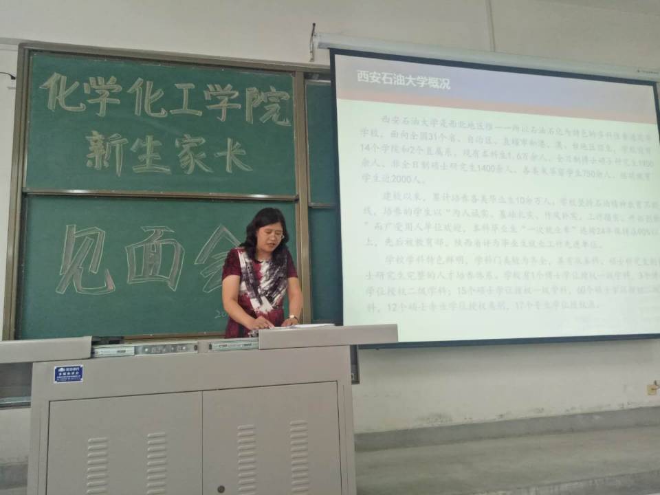在家长见面会上,应用化学系主任燕永利教授介绍了应用化学专业、环境工程专业现状及发展前景,化工系主任曹彬副教授介绍化学工程与工艺、能源化学工程专业现状及发展前景。两位老师希望新生进一步了解所学专业情况,更好的规划自身大学学习,为就业和考研做准备。