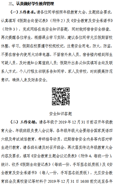 【安全教育】关于做好2020年元旦及寒假假期学生稳定安全教育工作的通知