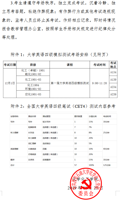 【学风建设】关于举办第一届大学英语四级模拟测试的通知