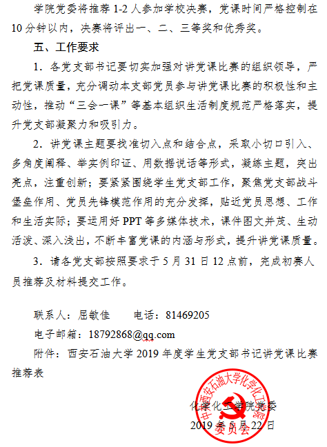 附件:西安石油大学2019年度学生党支部书记讲党课比赛推荐表.docx