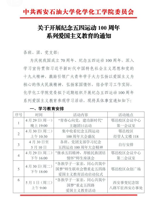 【思政教育】关于开展纪念五四运动100周年系列爱国主义教育的通知