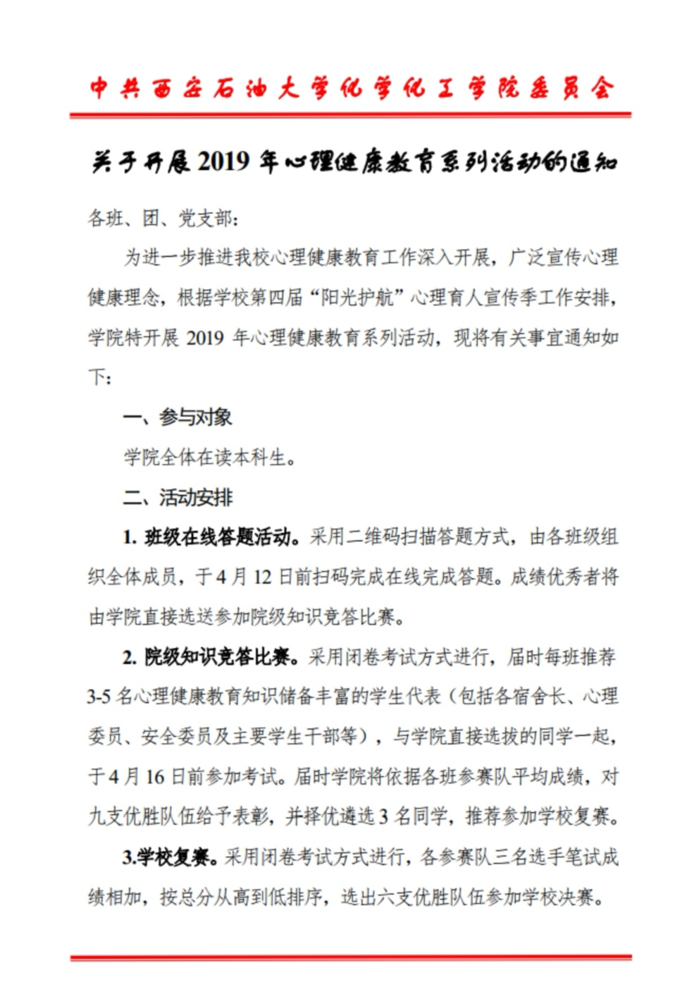 【学生工作】关于开展2019年心理健康教育系列活动的通知