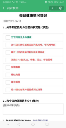 2、请各年级、班级负责人督促本组同学于每日上午10点30分之前完成“我在校园”打卡签到任务,并将填报结果反馈至辅导员处,如发现乱报、漏报、谎报等相关现象,一经查实,将严肃处理;