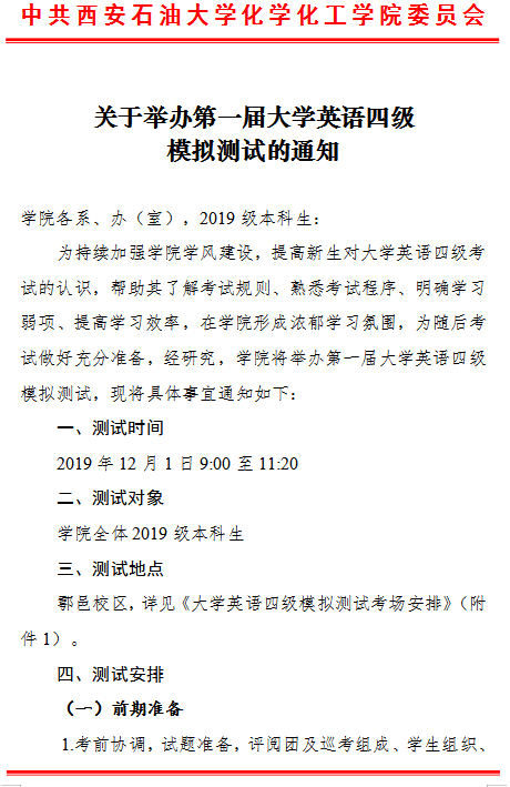 【学风建设】关于举办第一届大学英语四级模拟测试的通知