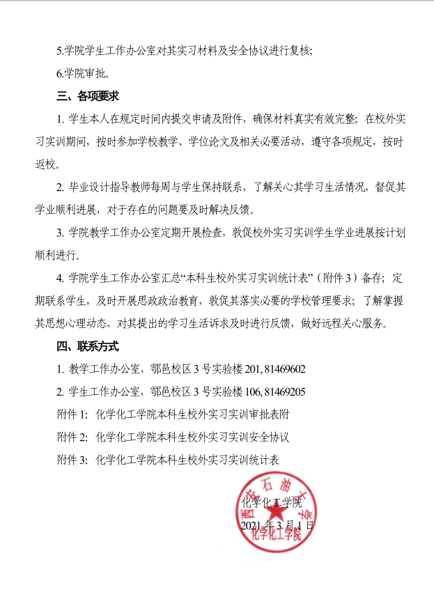 【学生管理】关于进一步做好本科生校外实习实训工作的通知